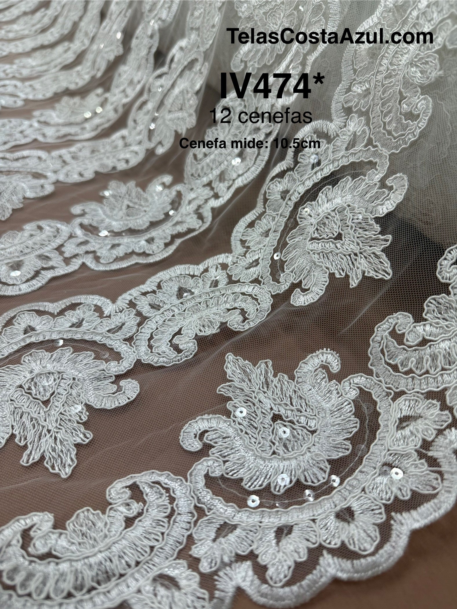 Bordado con 12 cenefas, cada cenefa mide 10.5cm